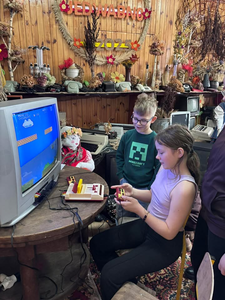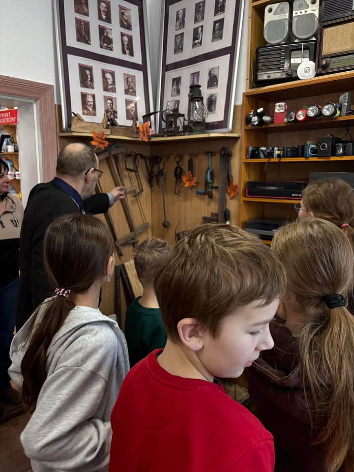Tego dnia odwiedziły nas dwie grupy szkolne z Zespołu Szkół w Jedwabnie – uczniowie pod opieką Pani Wioletty Rajkowskiej oraz Pani Barbary Gnoza-Wawrzynkiewicz. Dzieci przyniosły ze sobą swoje starocie i rodzinne pamiątki, których historią chętnie się z nami podzieliły. Każdy przedmiot krył w sobie wyjątkową opowieść, a wspólne rozmowy stały się piękną lekcją historii i pamięci o dawnych czasach.