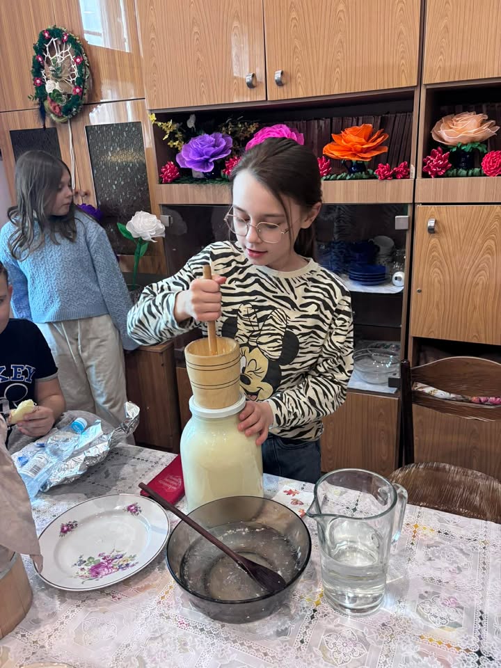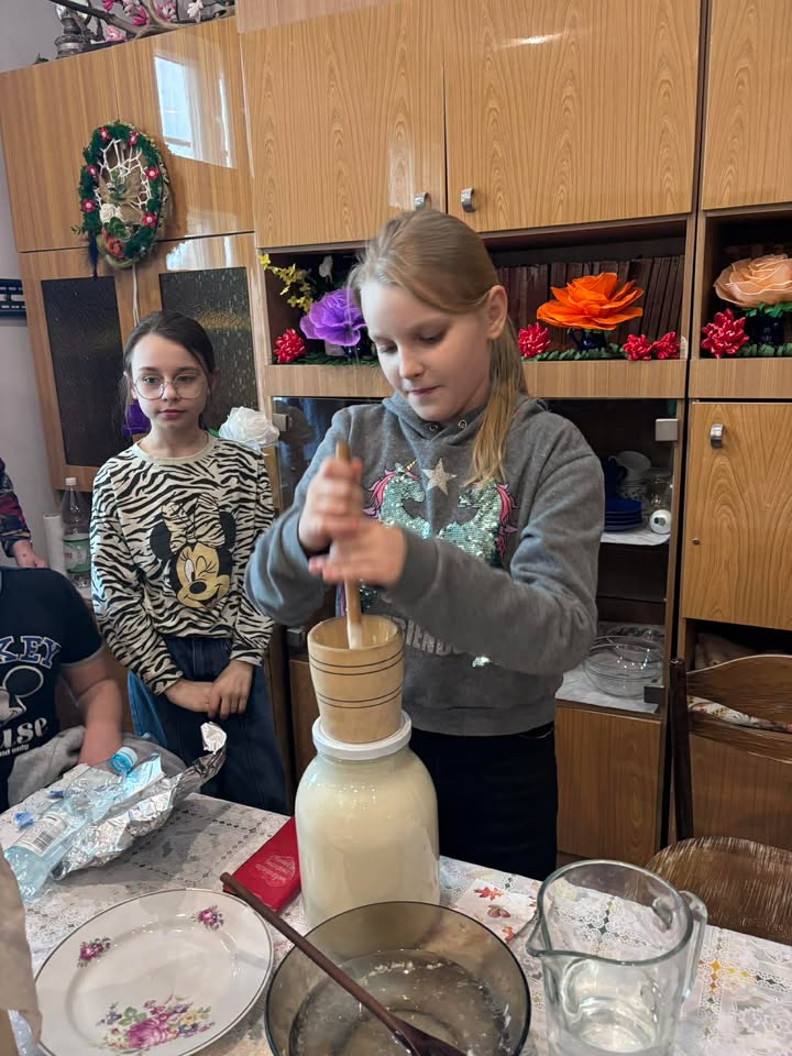 Uczestnicy wydarzenia wzięli udział w warsztatach tradycyjnego robienia masła, poznając dawne metody pracy i mogąc własnoręcznie spróbować tej niecodziennej czynności. Świeżo ubite masło można było następnie skosztować z pyszną drożdżówką.